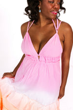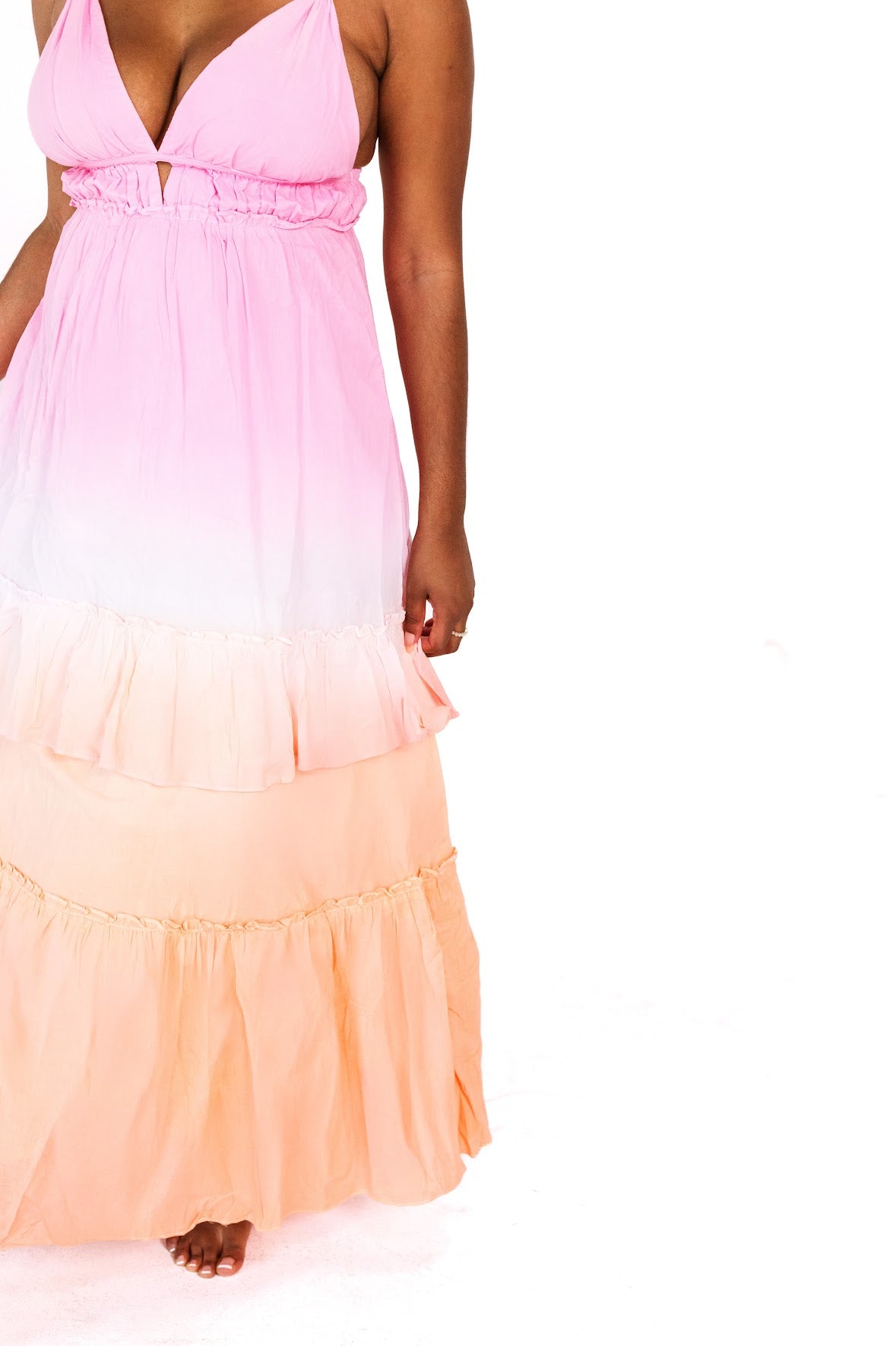 Unit price perIntroducing a stunning maxi dress adorned with beautiful gradient ruffles. This dress features a flattering V-neckline, an elastic waistline for a comfortable fit, and an underbust cutout for added detail. The textured fabric and ruffling detail add a touch of elegance, while the tiered maxi length and functional pockets make it both stylish and practical.