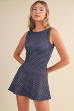 Polka Dot Print A-Line Mini Dress with Drop Waist