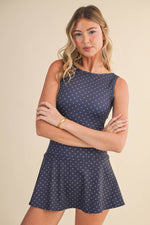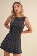Unit price perDesigned with a modern drop waist and breezy silhouette, this mini dress blends effortless style with all-day comfort. The soft, stretch-knit fabric moves with you—perfect for weekend errands, brunch, or low-key workouts. Polka dots add a fun, sporty twist to your athleisure rotation.