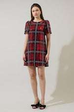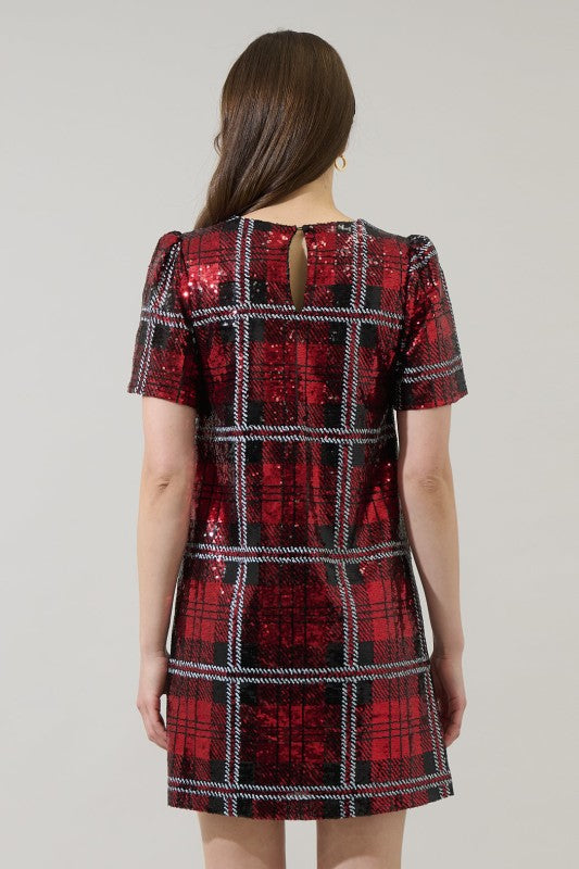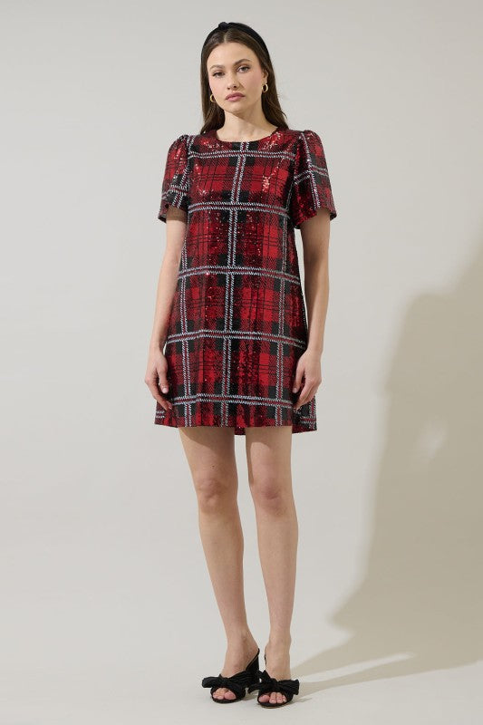 Unit price perStep into the spotlight this fall and winter with effortless sparkle. This mini dress features a vibrant red-multi plaid pattern fully covered in sequins for a festive, eye-catching look. Perfect for seasonal events, it pairs beautifully with sleek black heels and a simple clutch to complete your chic ensemble. - Plaid - Short puff sleeve - Mini - Sequin - Color: Red Multi Size + Fit - Model is 5'9" and wearing size XS - Measurements taken from size S - Chest: 18" - Length: 34 1/2"
