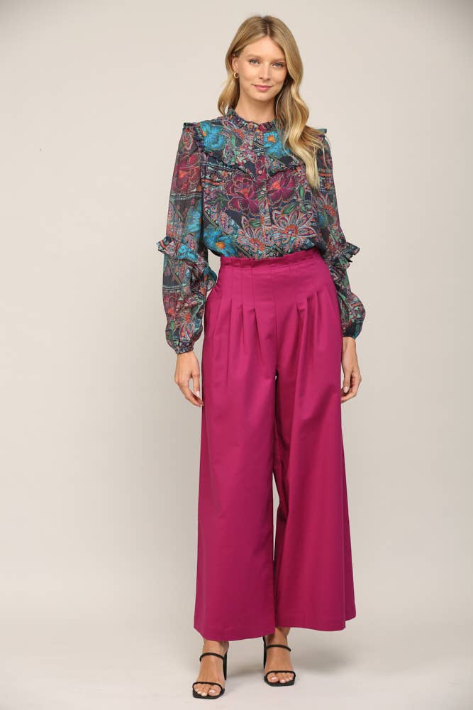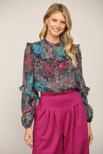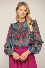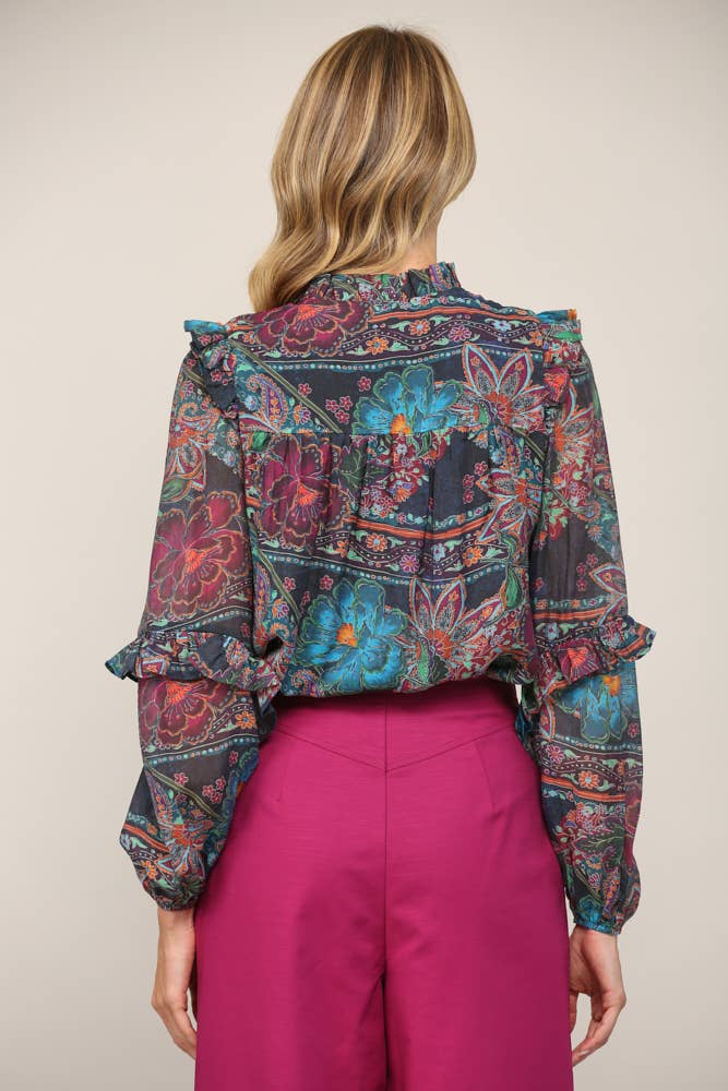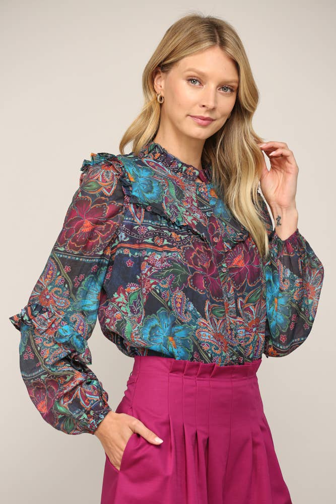 Step into the whimsy of fall with our Autumnal Garden Ruffle Blouse. Featuring a unique and timeless floral print, this blouse will carry you through the seasons in style. The playful ruffle detail adds a touch of fun to any outfit.