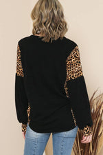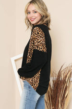 LONG SLEEVE TOP WITH LEOPARD CONTRAST DETAILS 95%POLYESTER 5%SPANDEX MADE IN USA