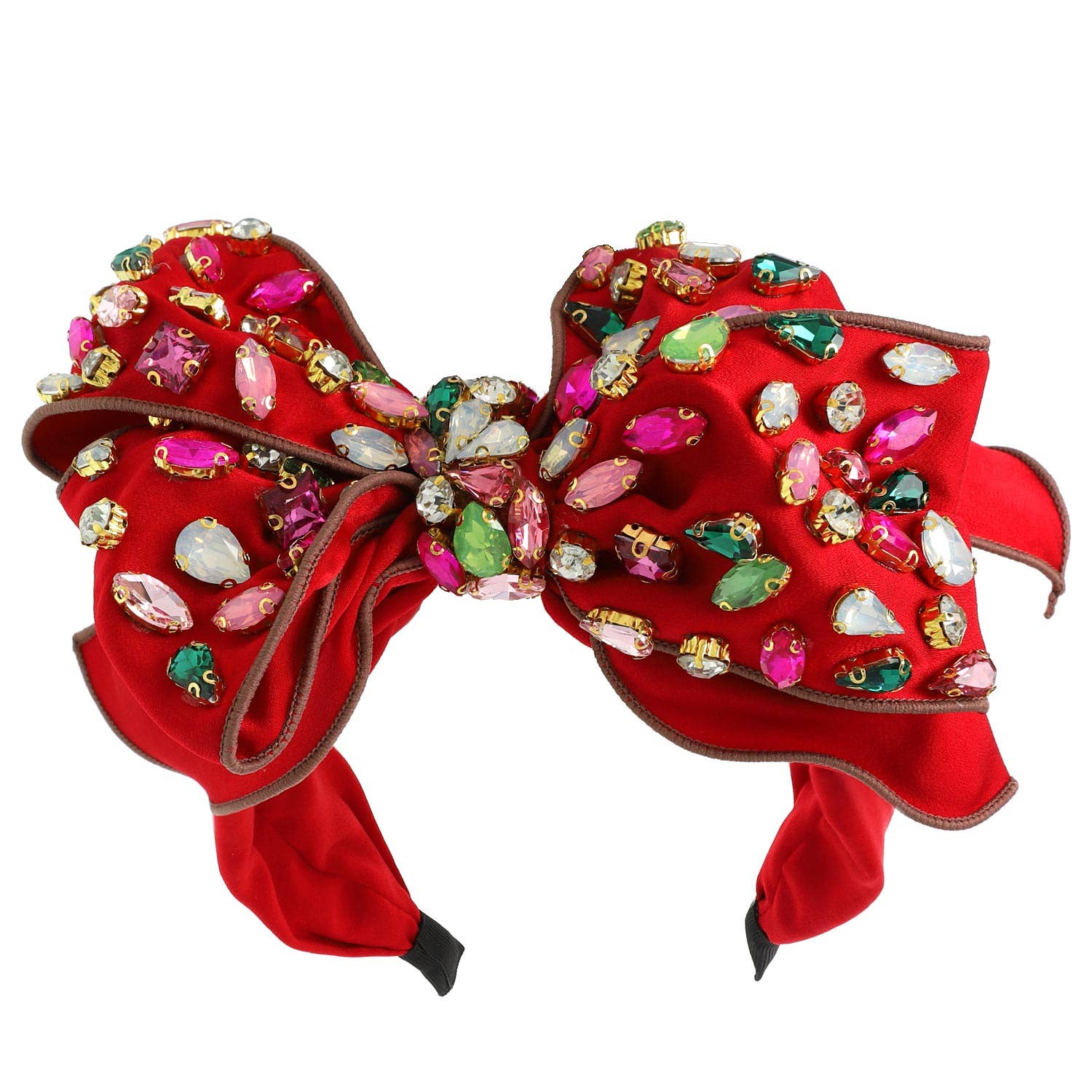 Unit price perThis headband features a large velvet bow embellished with high-quality gemstones for a luxurious holiday look. Its stretch band ensures a comfortable fit for any size. A perfect statement piece for a special occasion.