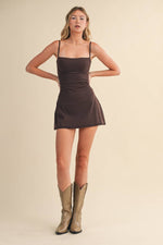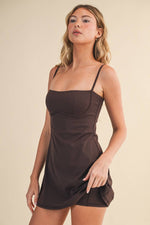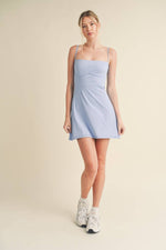 New, updated version of our Sweetheart Dress with a shorter length and narrower bust for a more flattering look. Less ease at the waist and internal shorts. Trendy and functional exercise dress comes with built-in bra, spaghetti straps, short liners, and four-way stretch fabric to give you support and comfort wherever your day takes you. 75% Nylon, 25% Spandex