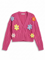 Knit your style game up a notch with this Flower Applique Knit Sweater Cardigan. Featuring a lovely floral design and a button-down front, this V-neck outerwear will surely keep you cozy and in style. With long sleeves, drop shoulders, and a ribbed hem, this cardigan is a perfect addition to your wardrobe