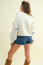 Unit price perThis cozy sweater features a button-down front with charming and playful contrast bows.