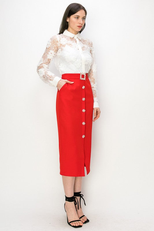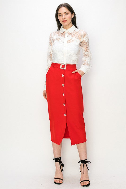 Rhinestone Button Down Midi Skirt