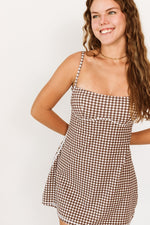 Unit price perTrendy and functional gingham print exercise dress comes with built-in bra, spaghetti straps, short liners, and four-way stretch fabric to give you support and comfort wherever your day takes you.
